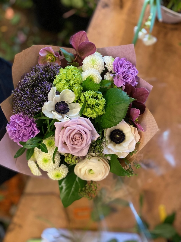 Would you like to send a beautiful floral easter gift? Our florists will create a beautiful gift for you,using seasonal stems in white, lilacs and purples.